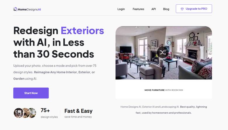 Why It Stands Out: A fantastic option for virtual staging and experimenting with furniture layouts, paint colors, and architectural details. It’s a great starting point for anyone new to AI design.